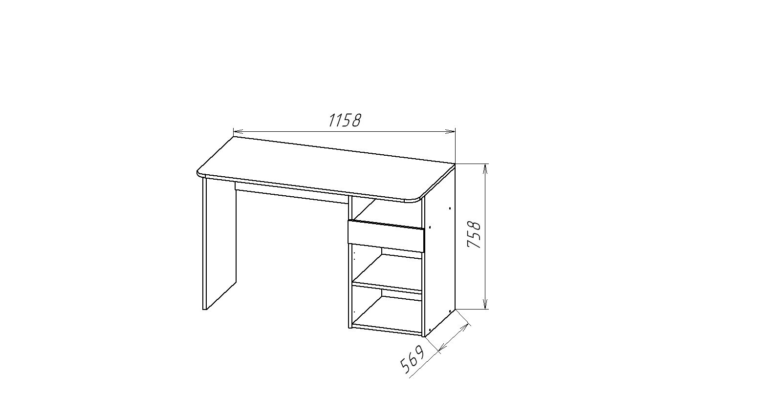 Стол письменный. Дверка, внутри полка, ящик (Направляющие НПВ шариковые, без ручки) и ниша. Ручка пластик, белая