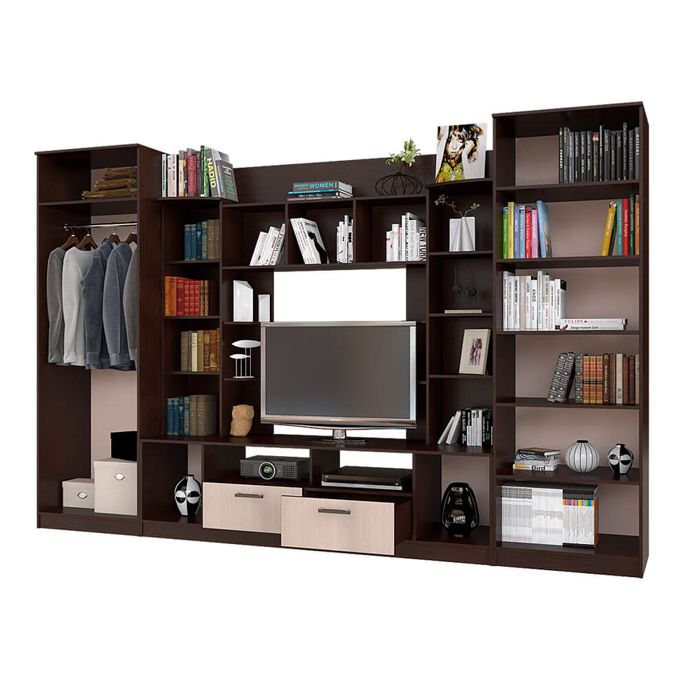 Гостиная оборудована нишей под ТВ размерами 1152*752*460