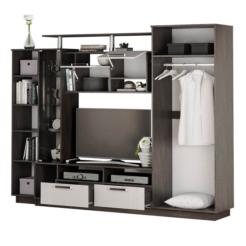Наличие распашного шкафа со штангой позволит хранить одежду