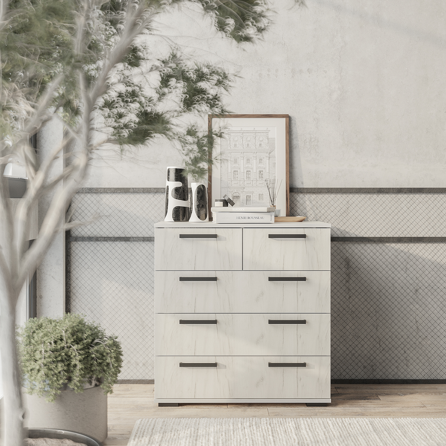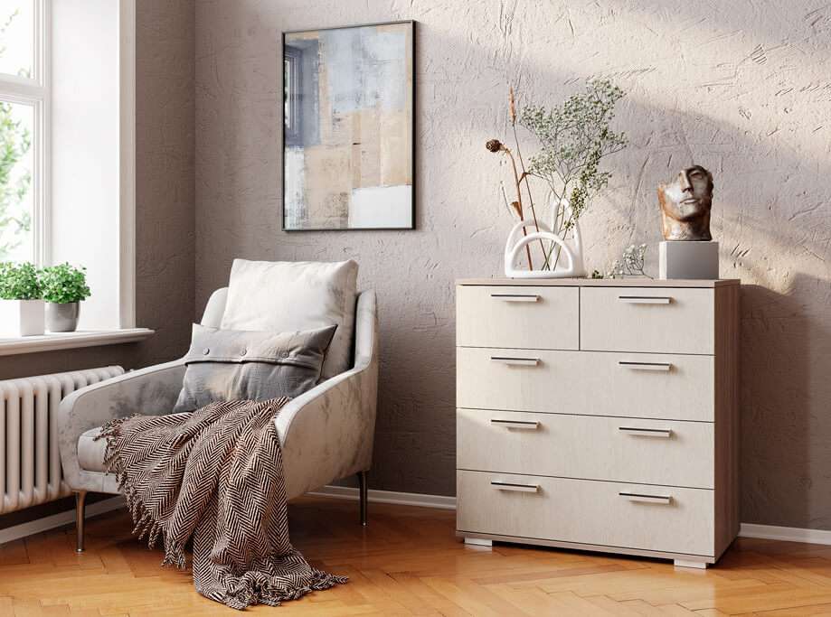 Комод "Стандарт-5 NEW" от производителя БТС — это сочетание функциональности и стиля по доступной цене! С шириной 800 мм, высотой 828 мм и глубиной 464 мм он идеально подойдет как для спальной комнаты, так и для гостиной. Корпус изготовлен из качественного ЛДСП, что обеспечивает долговечность использования мебели. Фасад также выполнен из ЛДСП, придавая изделию современный вид. Встроенные роликовые направляющие гарантируют плавное открывание ящиков без лишних усилий. Улучшите интерьер своего дома вместе с нашим комодом!