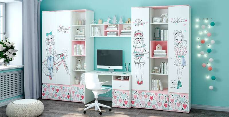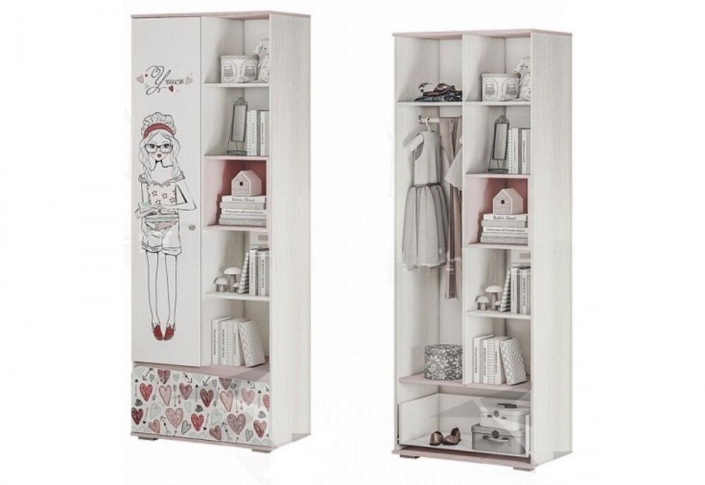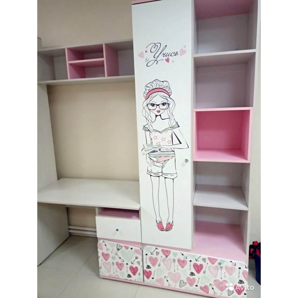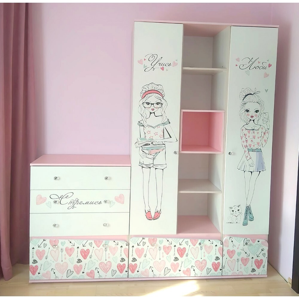- изделие выполнено из ЛДСП белого цвета, фасады украшены фотопечатью с изображением девочки и сердечек,