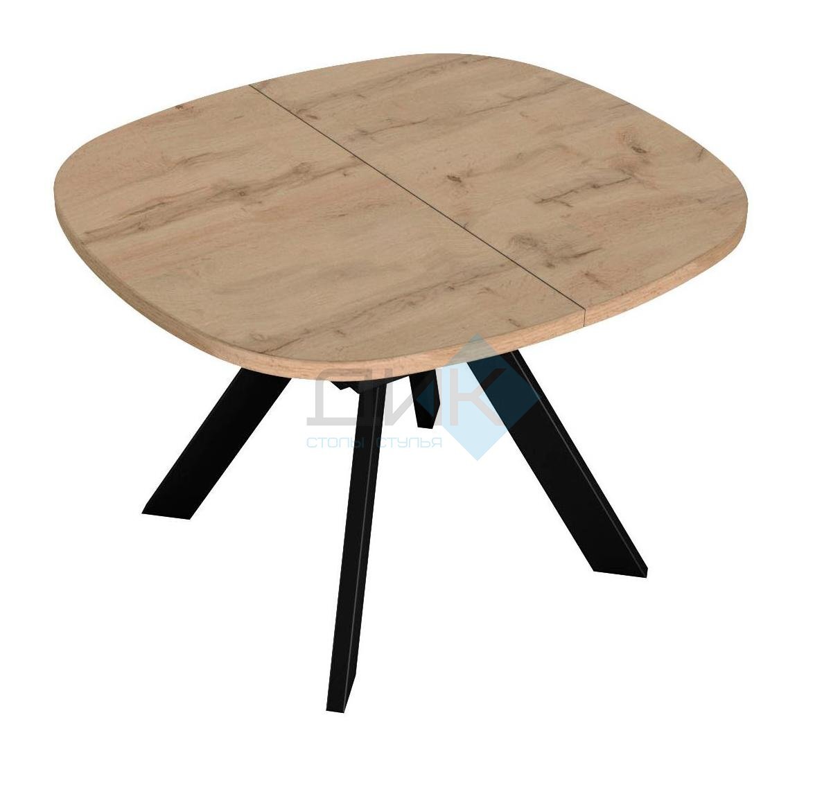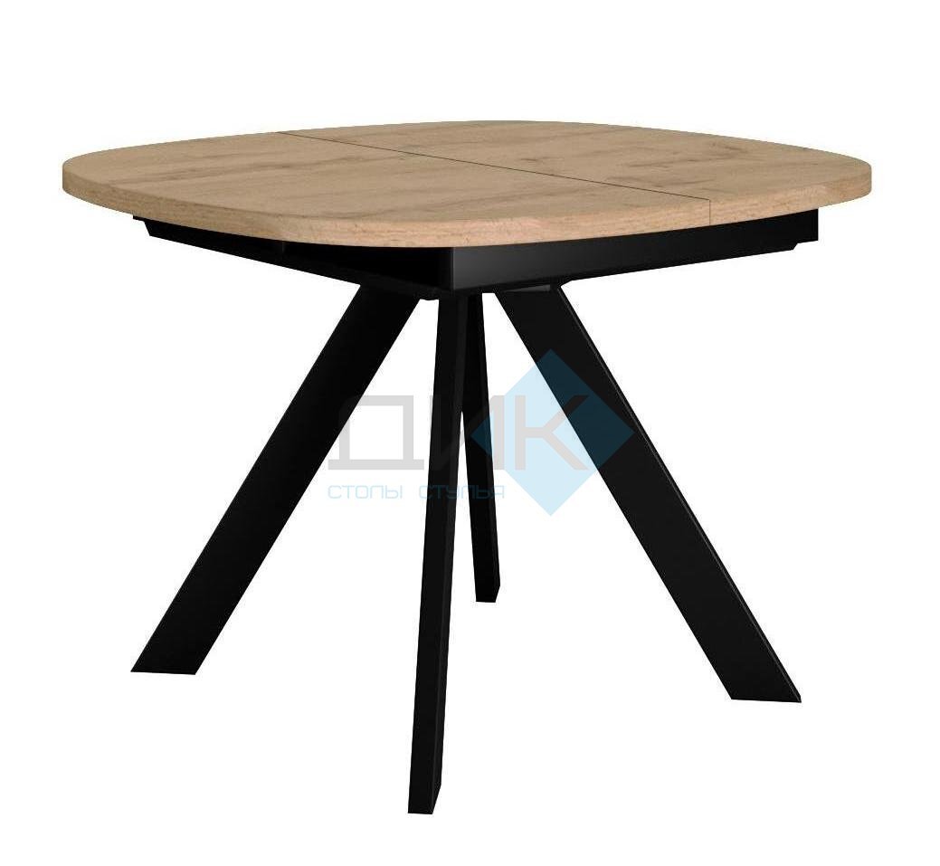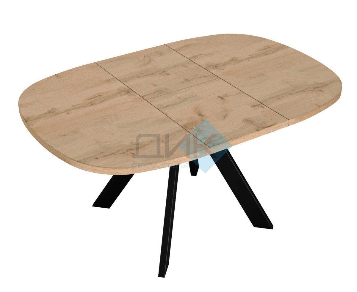 Обеденный раздвижной стол DikLine В110 идеально впишется в интерьер стиля лофт! Стильный чёрный цвет металлических опор подчеркивает брутальность направления, а синхронная система раскладывания обеспечивает комфортное использование стола как компактного обеденного варианта (шириной 110 см), так и просторной модели (до 145 см) для больших семейных посиделок или приема гостей. Качественный материал столешницы – ЛДСП – гарантирует надежность и долговечность использования.