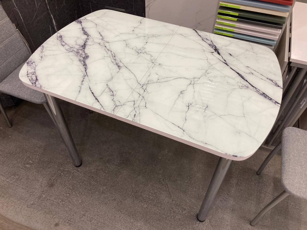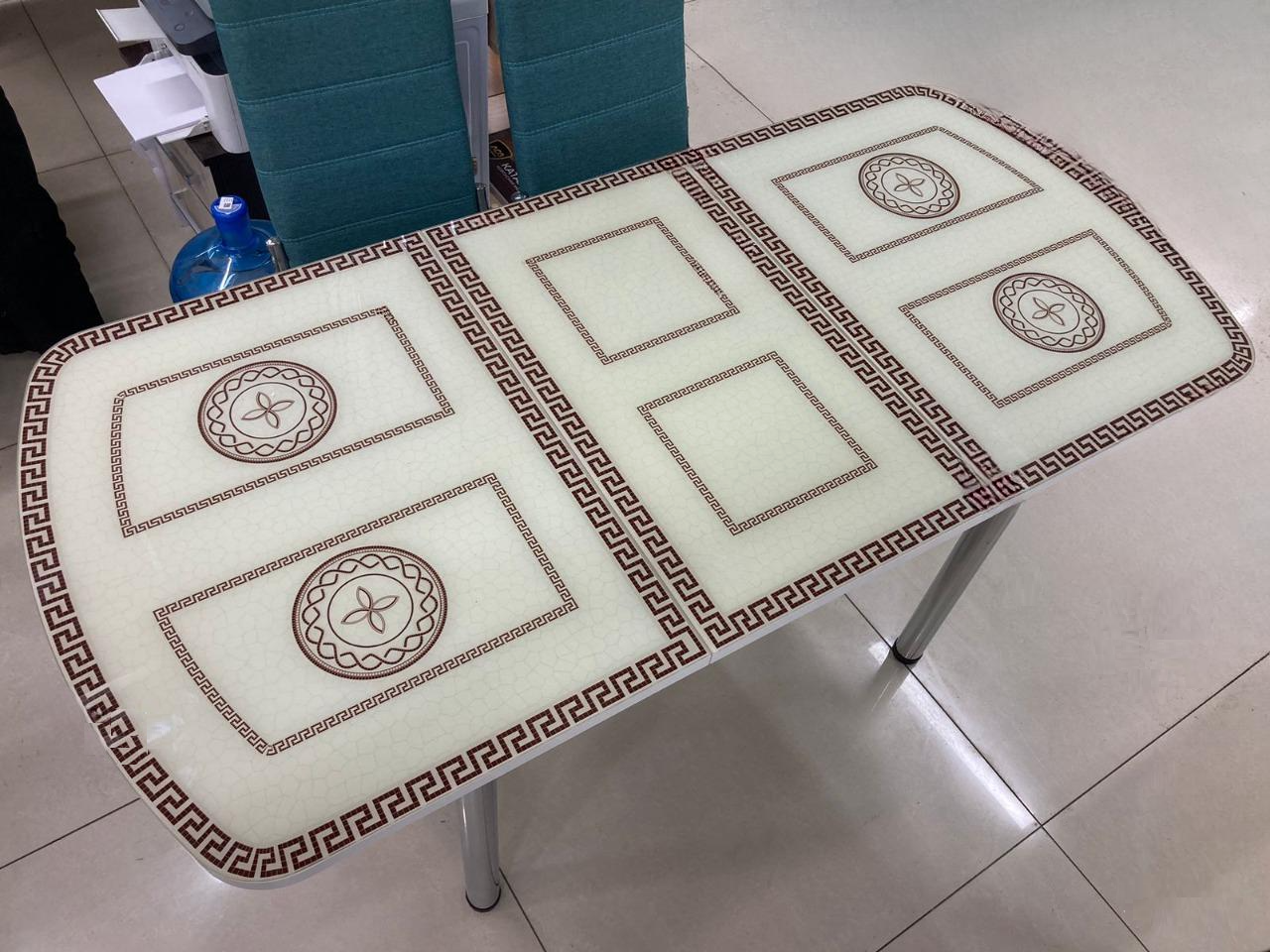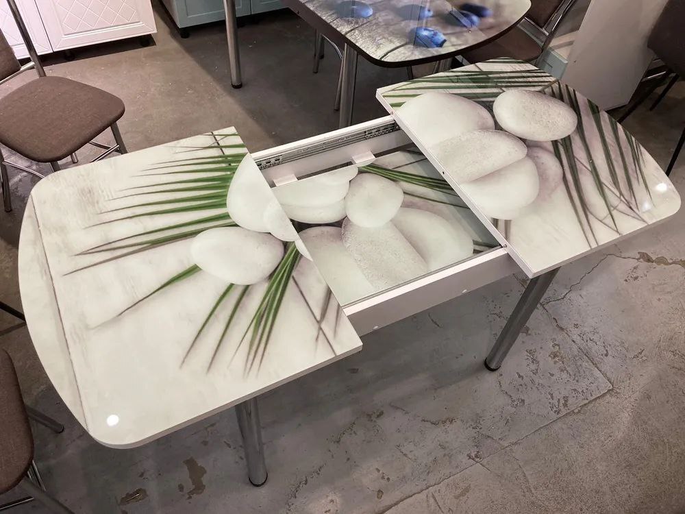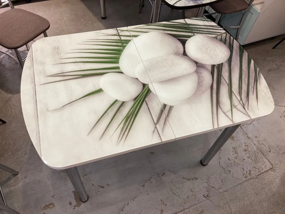 Стол стеклянный с фотопечатью (подстолье прямое раздвижное белое )