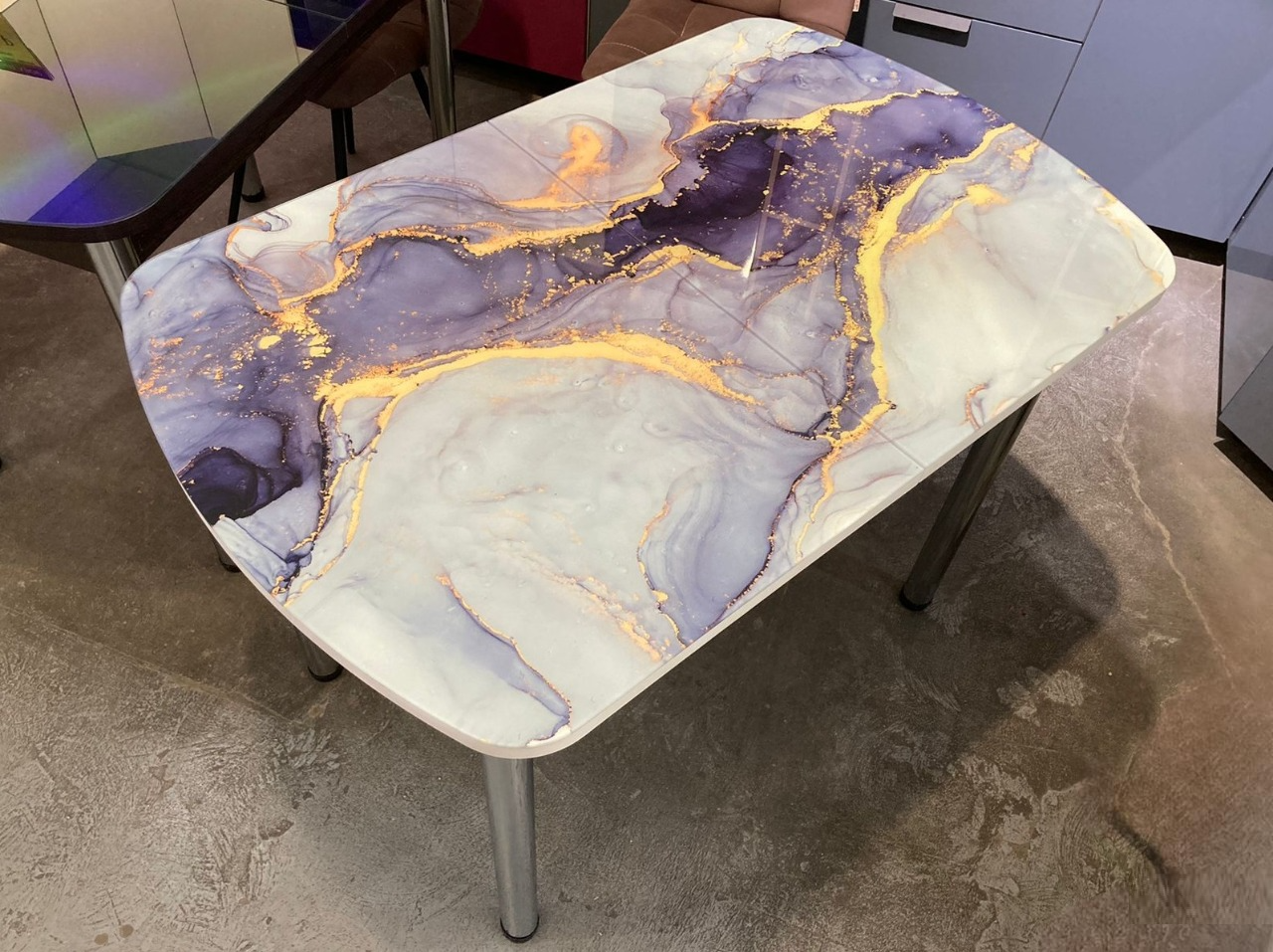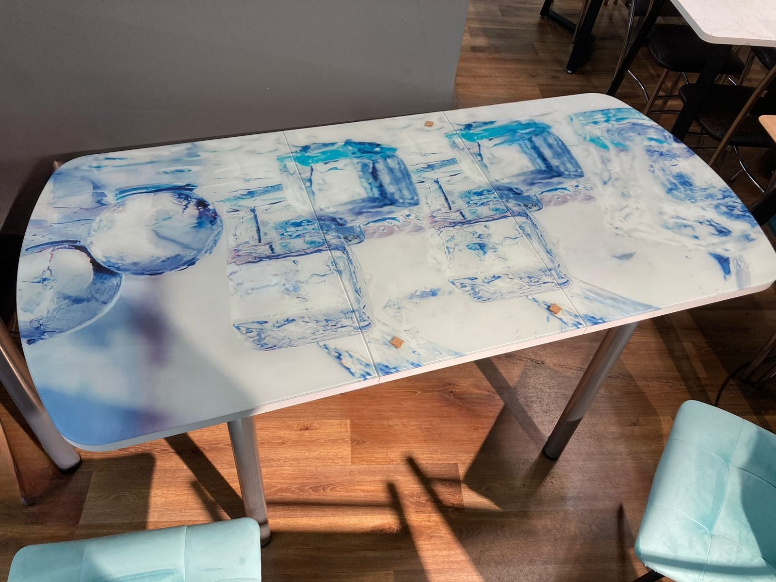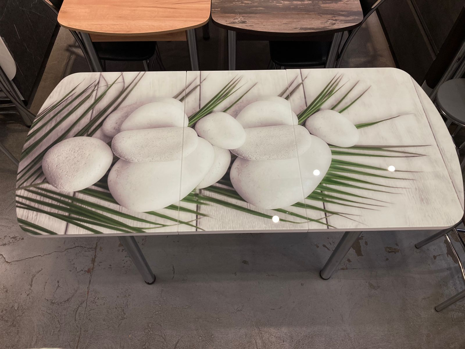 Стол стеклянный с фотопечатью (подстолье прямое раздвижное белое )